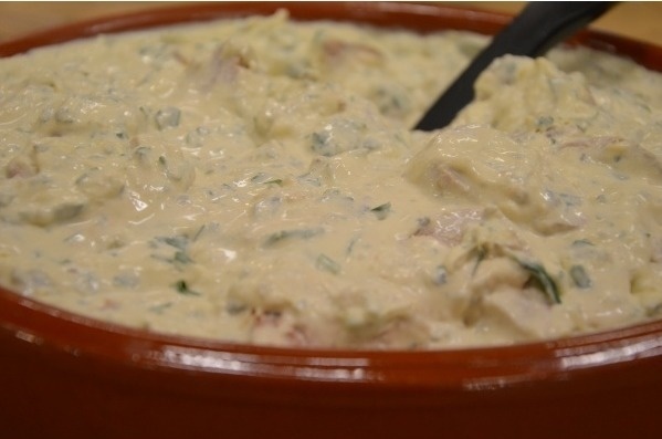 Varkenshaas in gorgonzola saus. Per 100 gram.